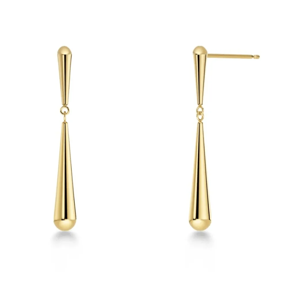 Dessa lite mindre örhängena i 14 karats guldplätering har en klassisk look för alla tillfällen. De två dropparna, en lite mindre och en större får en vacker rörelse när de hänger i örat.