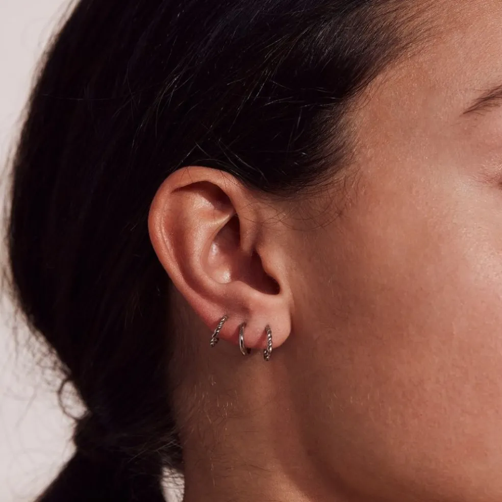 I Duo Pair creoler har vi kombinerat två par örhängen, ett par släta och ett par från populära serien Rope. Här kan du styla med flera örhängen i örat och gärna med ONE studs till.