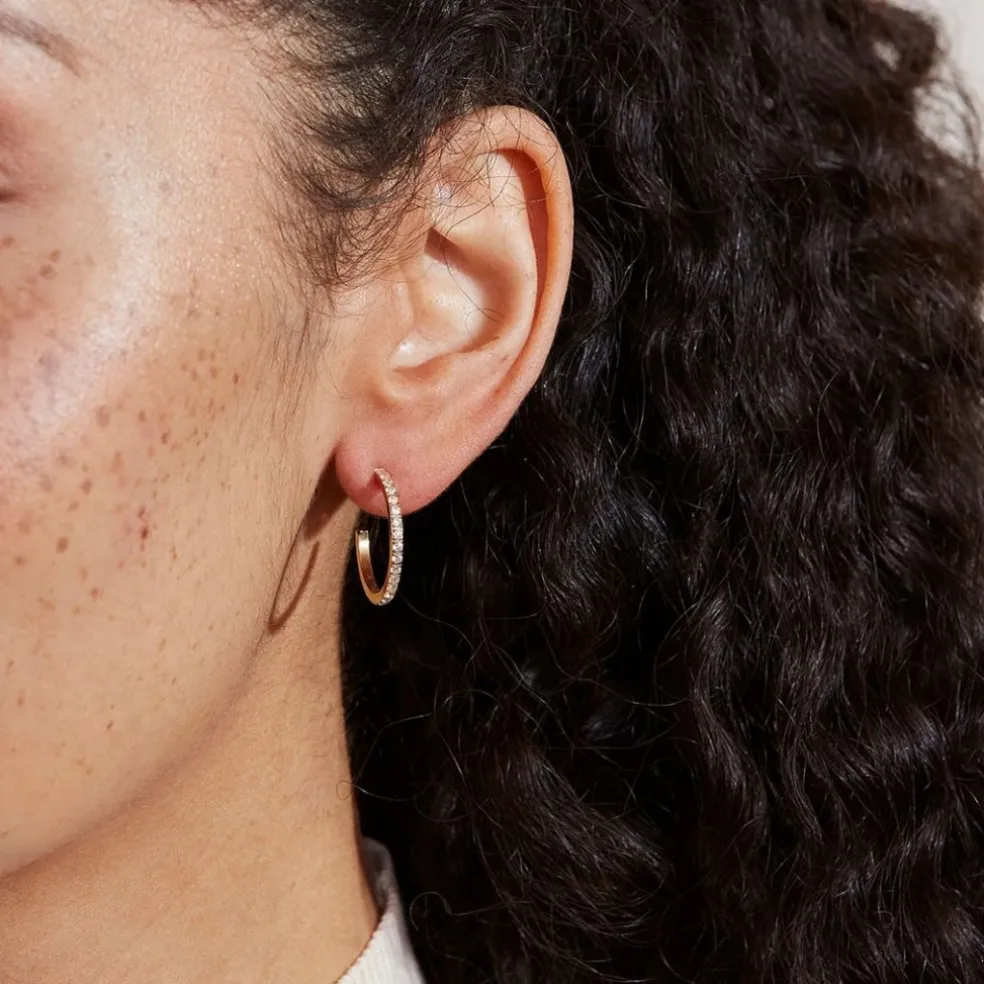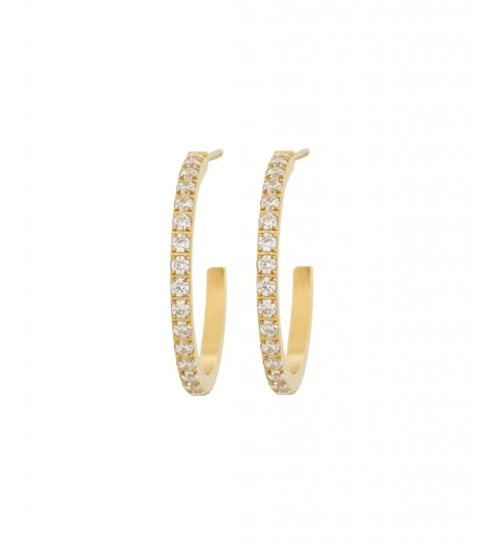 Härliga Glow creol kommer här i en liten modell med fina gnistrande stenar satta runt hela utsidan. Glow creloer mini är elegant tunna och storleken MEDIUM passar att bär alla dagar i veckan.