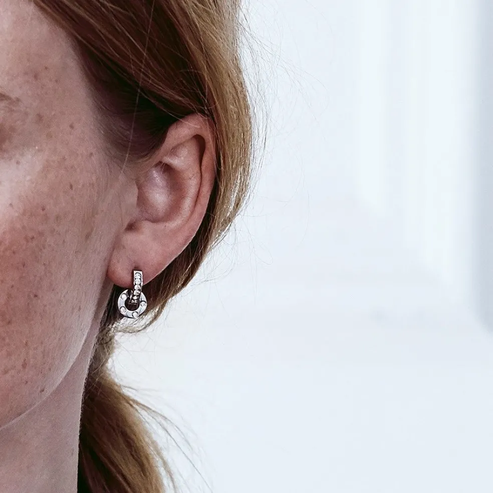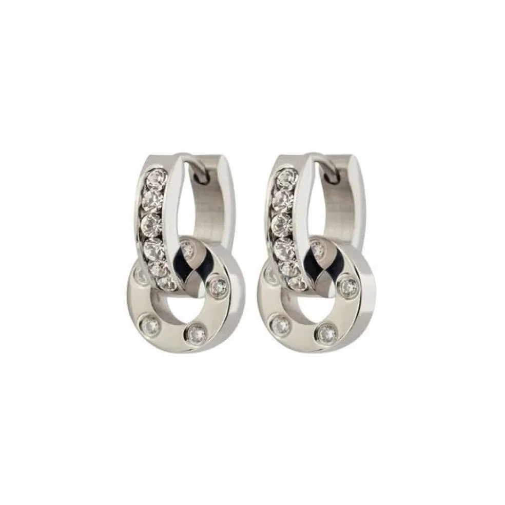 Örhänget Ida Orbit blir snabbt en favorit som hänger med dig länge. Ida Orbit har klara stenar på båda ringarna, här med metall i stål.