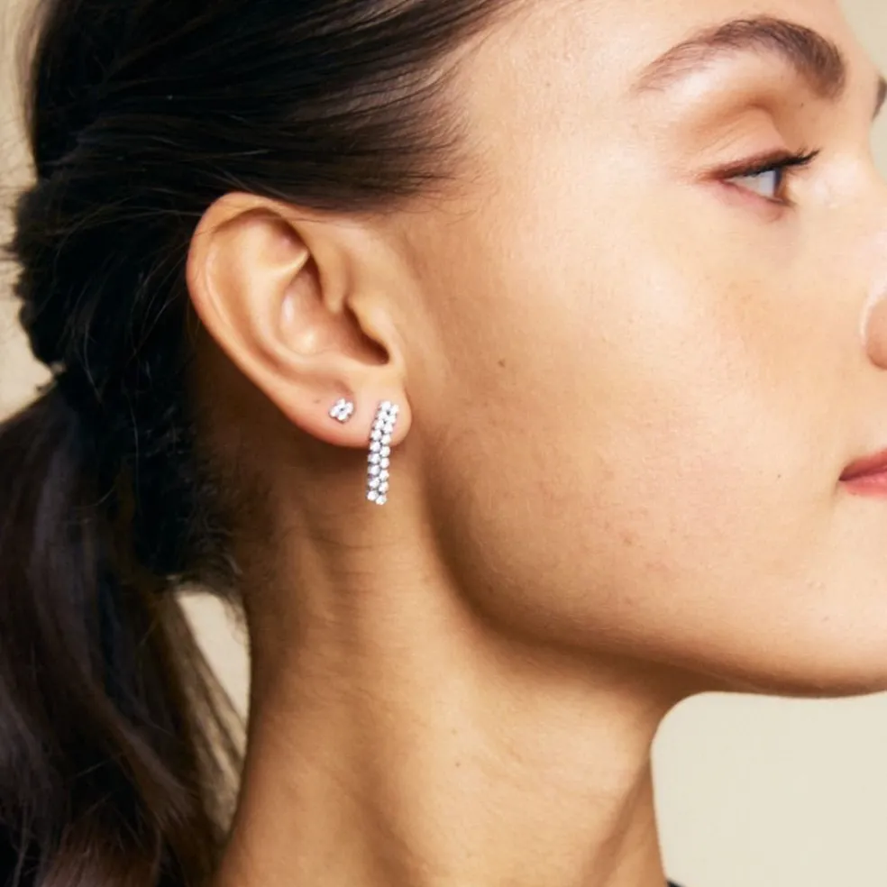 Med ett par Joya-örhängen får du inte bara ett par vackra örhängen, utan ett statement av stil och klass. Dessa örhängen erbjuder två rader av strålande stenar, vars skönhet förstärks av deras nätta infattning. Perfekt för festligheter och högtider, Joya-örhängena lyfter fram din elegans och skönhet för varje steg du tar.