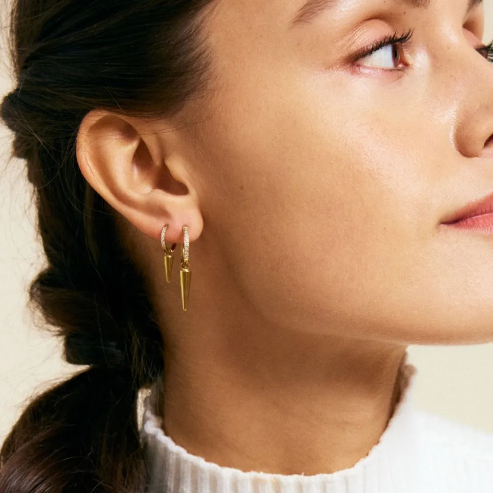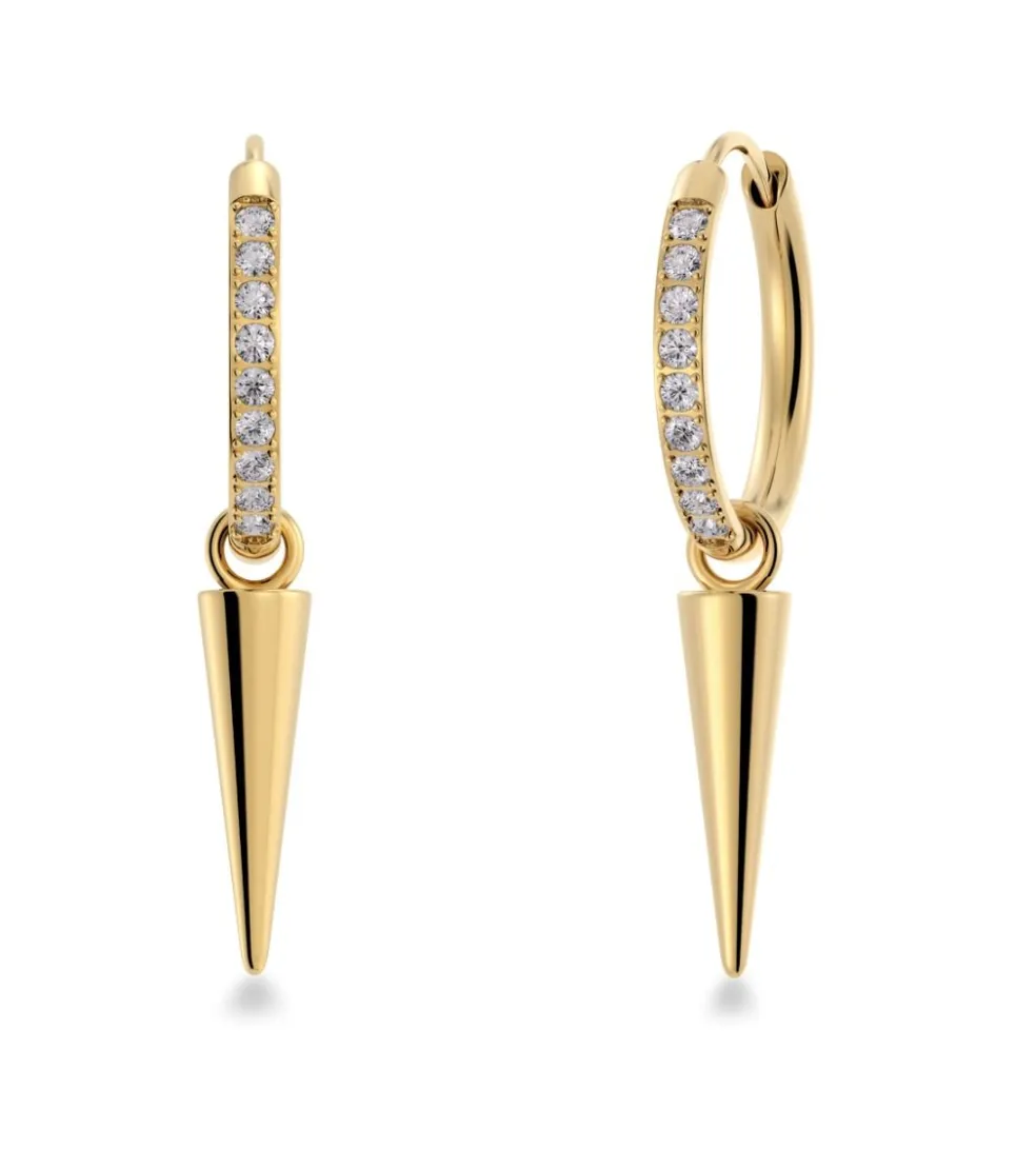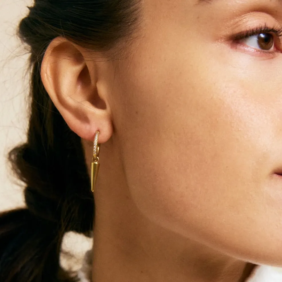 I Peak hoops sparkle sitter klara små stenar på framsidan av ringen som håller den långsmala niten, coolt och effektfullt örhänge. I Peak hoops sparkle kan man ta av niten och bara använda hoopsen som de är, eller hänga på något mer om man vill. Peak hoop ses här i blank guldpläterat stål. Kolla också in andra delar i serien Peak.