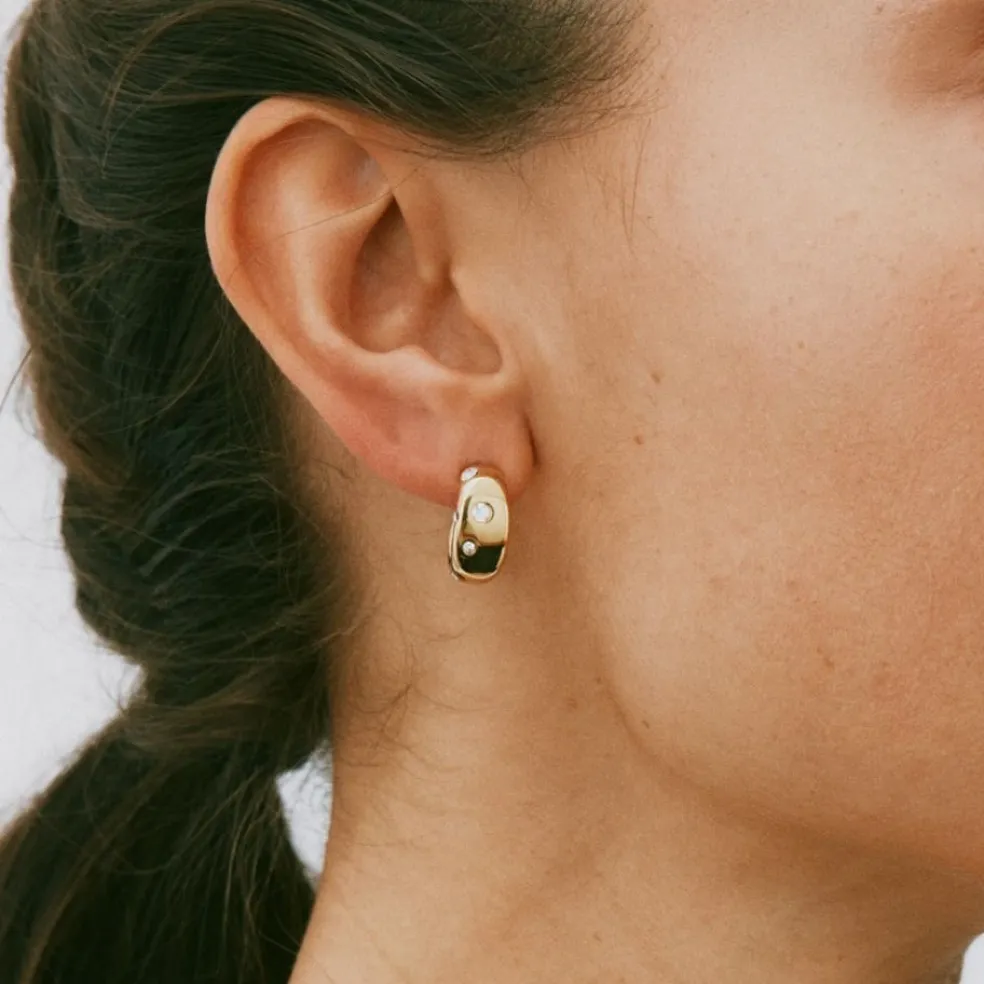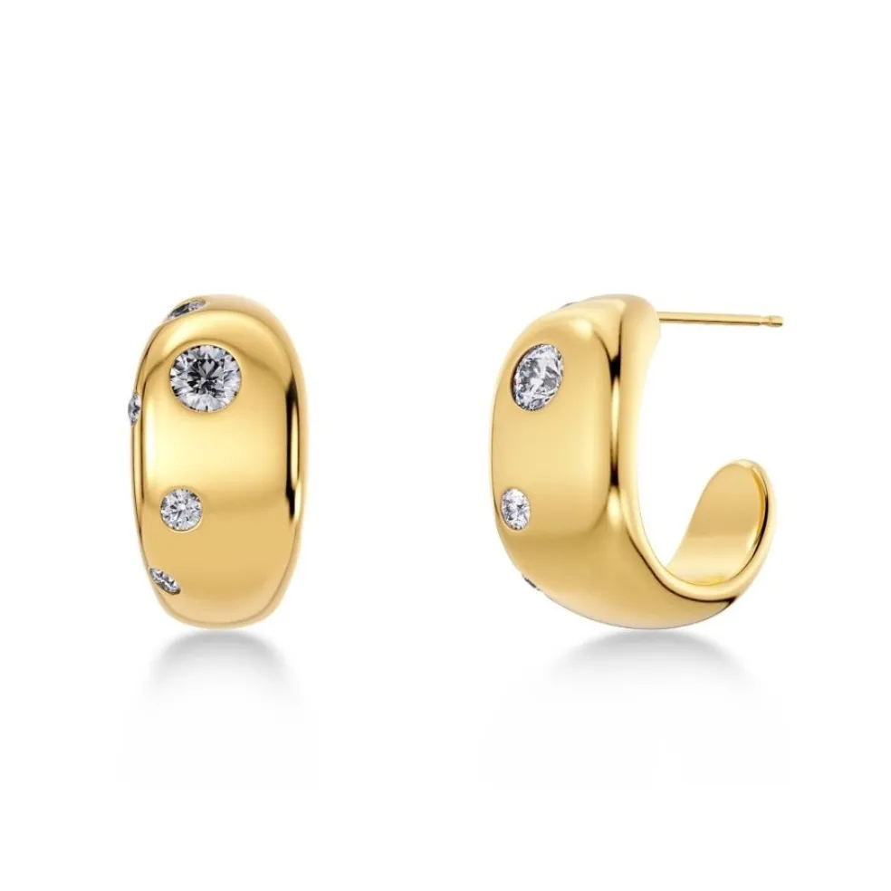 De här hoopsen är helt solida med blank metall och glittrande stenar, ses här i 14 karats guldpläterat stål.