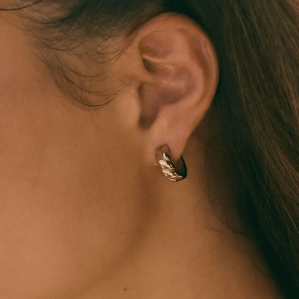 De klassiska hoopsen med seriens karaktäristiska knut, kommer i två storlekar, här i den lite mindre i 14 karats guldplätering.