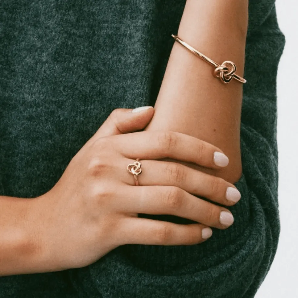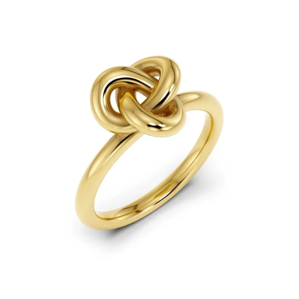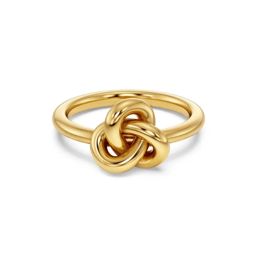 Den skulpturala evighetsknuten i serien Infinity Knot är en tidlös klassiker. Här med knutformen i en nättare ring i 14 karats guldpläterat stål. Fin att kombinera med fler delar från samma serie.