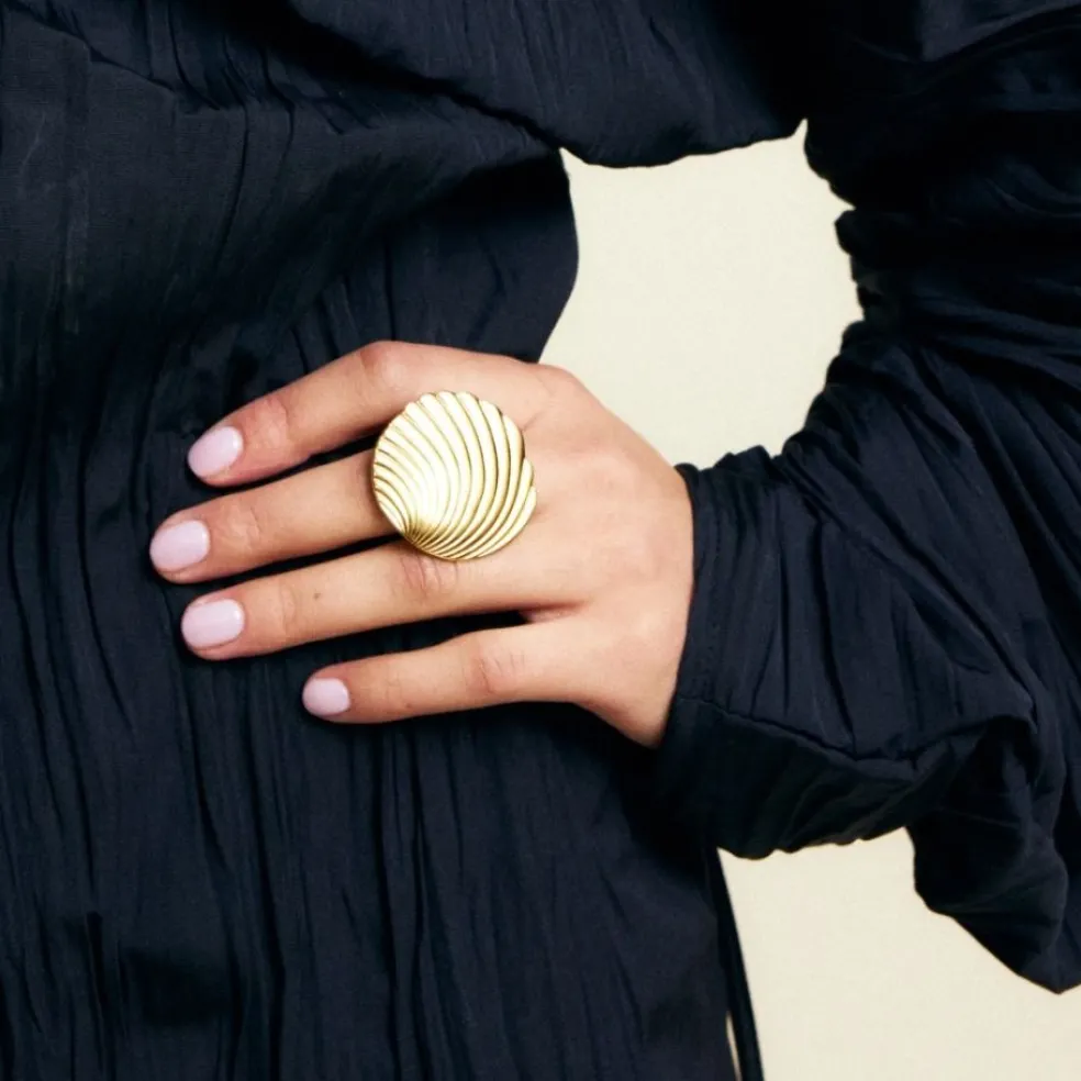 Den stora snäckan tar för sig på fingret och blir genast ett samtalsämne på alla fester och tillställningar. Bär den med stolthet och låt den lysa upp din outfit, särskilt tillsammans med det matchande Shelli halsband eller örhängen för en komplett look som imponerar.