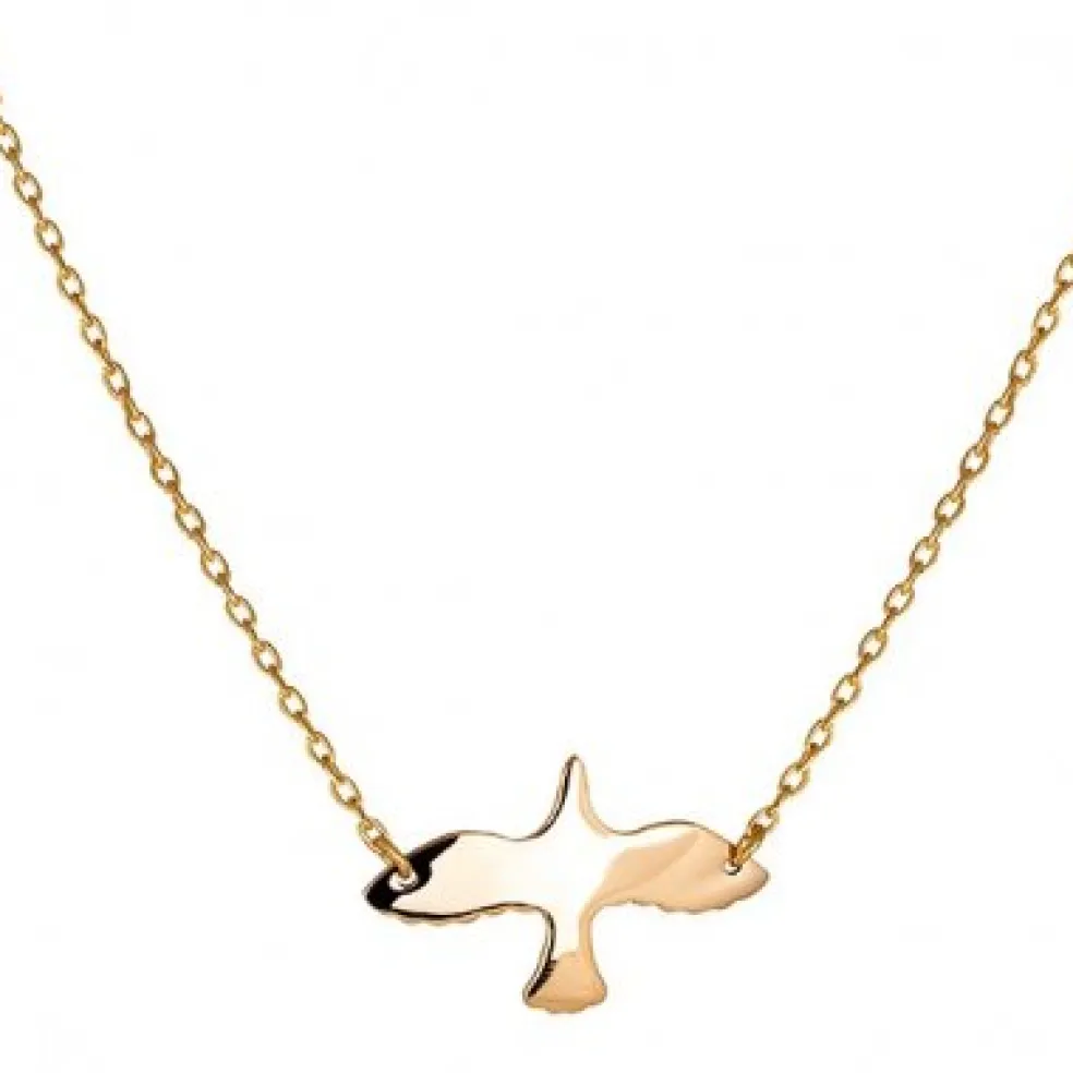 Material; Duva gjord i 18K guldförgylld mässing på en 18K guldförgylld silverkedja.