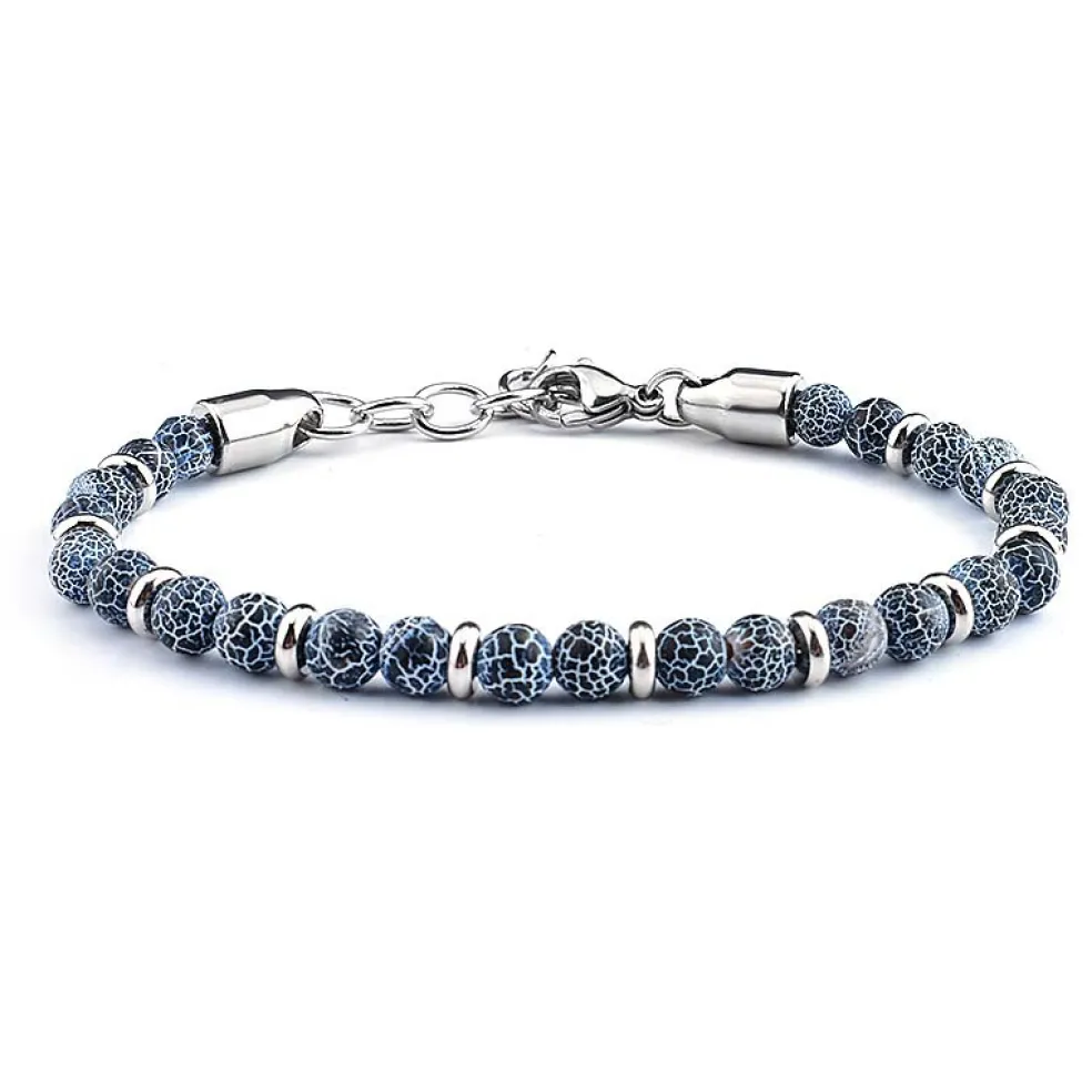 Trendigt herramband med naturliga stenar på, här med den blå agaten "weatered" och metalldetaljer i stål.