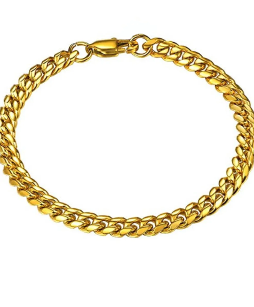 Klassisk armkedja av så kallad Cuban Link modell, här i PVD guldpläterat stål. Armkedjan är 0,7cm bred och finns i ett flertal olika längder.