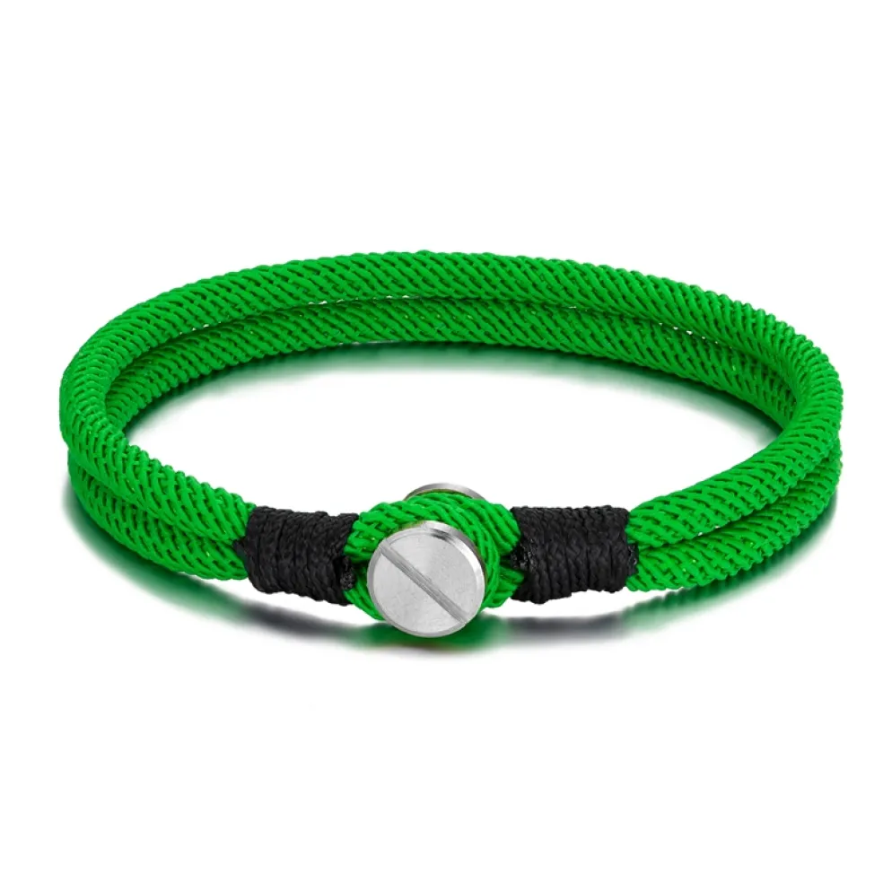 Dubbelradigt tygarmband med knapplås i stål, här i grön färg.