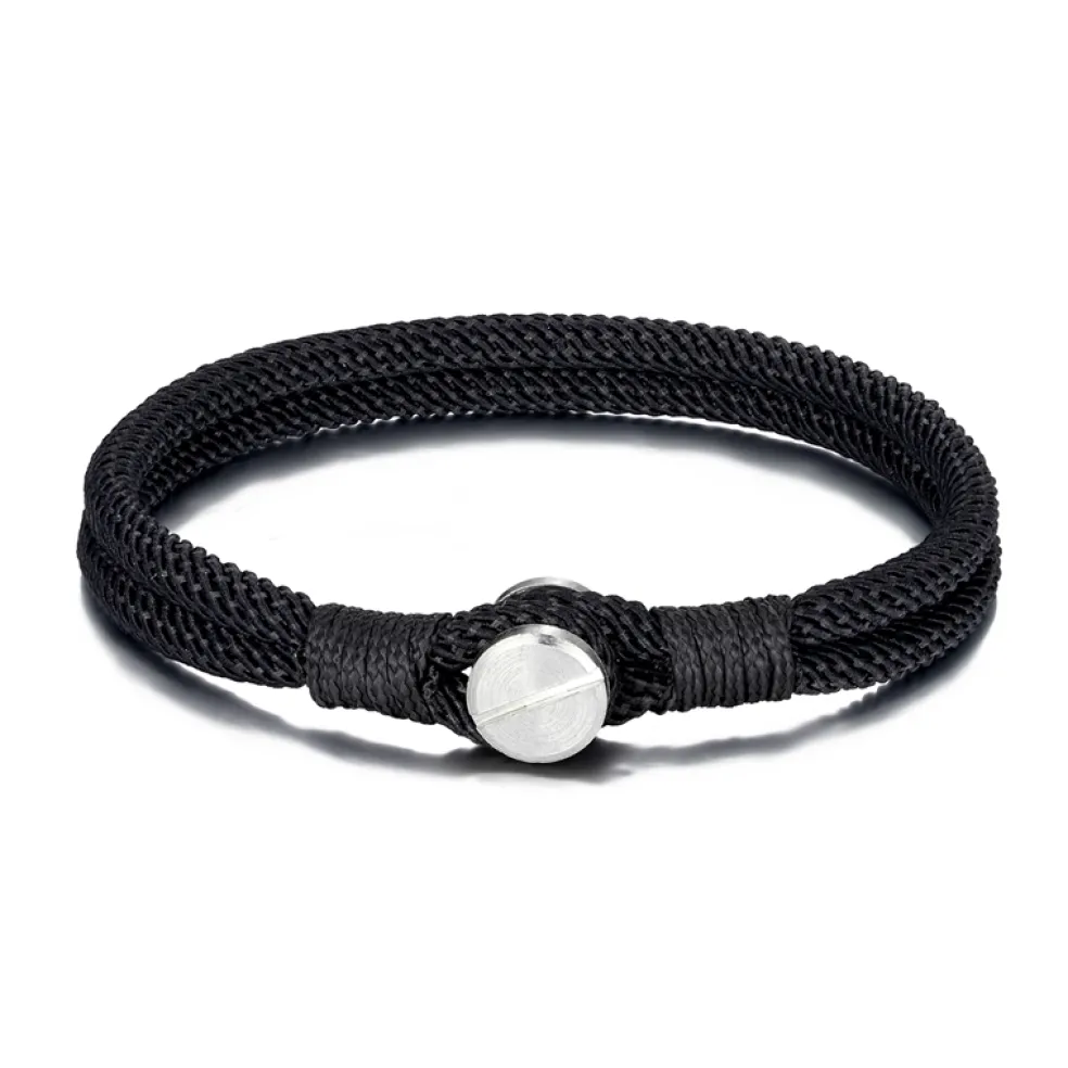 Dubbelradigt tygarmband med knapplås i stål, här i svart färg.