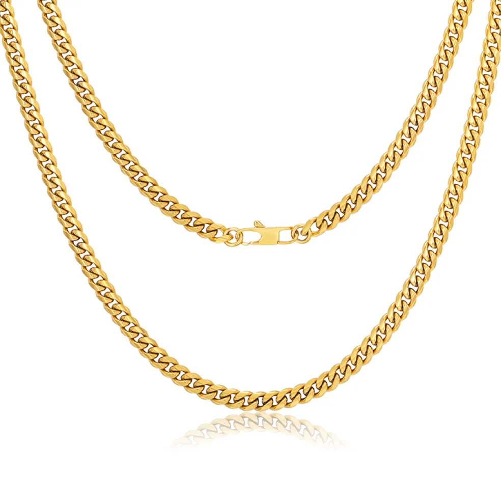 Klassisk halskedja av så kallad Cuban Link modell, här i guldpläterat stål. Halskedjan är 0,6cm bred och finns i ett flertal olika längder.