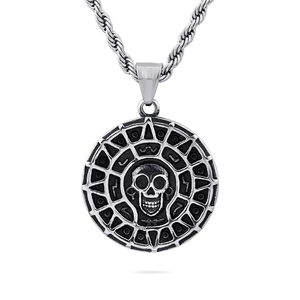 Runt hänge i form av en dödskalle i kombination med en kompassros, här på den läckra Cordellkedjan, allt i hållbart stål.
