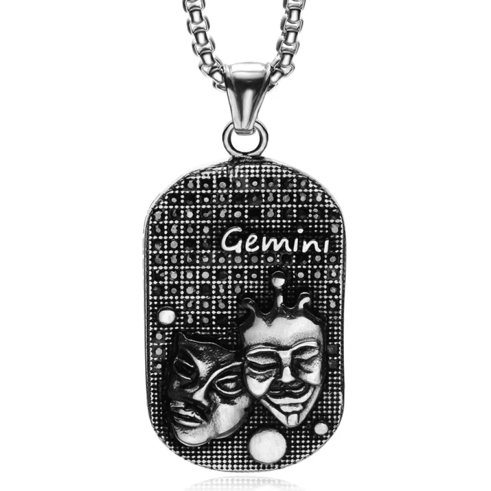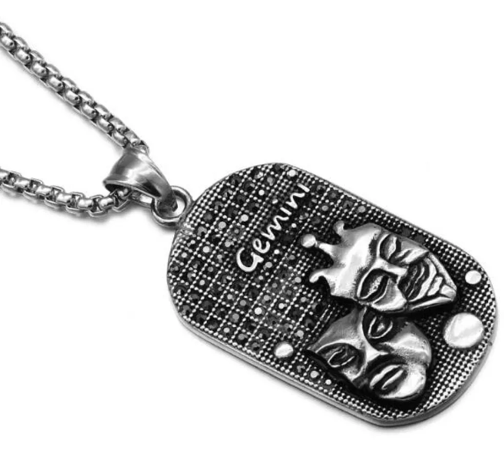 Halsband med stjärntecken TVILLINGARNA, här i stål för bästa hållbarhet. På hänget sitter det små svarta kristaller som gnistrar fint i ljuset.