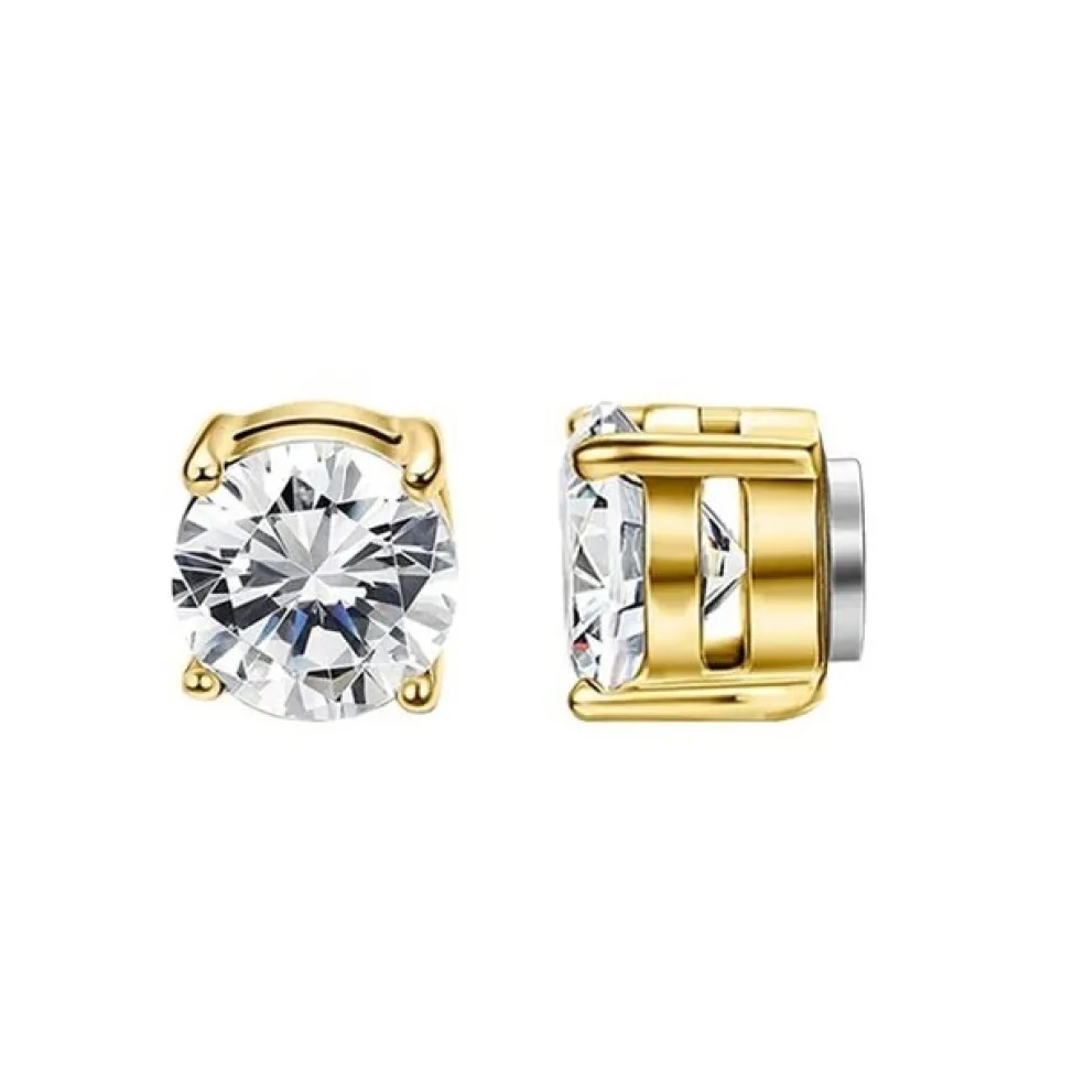 Runt kristallörhänge med magnet för dig utan hål i öronen, här i guldfärgat stål.