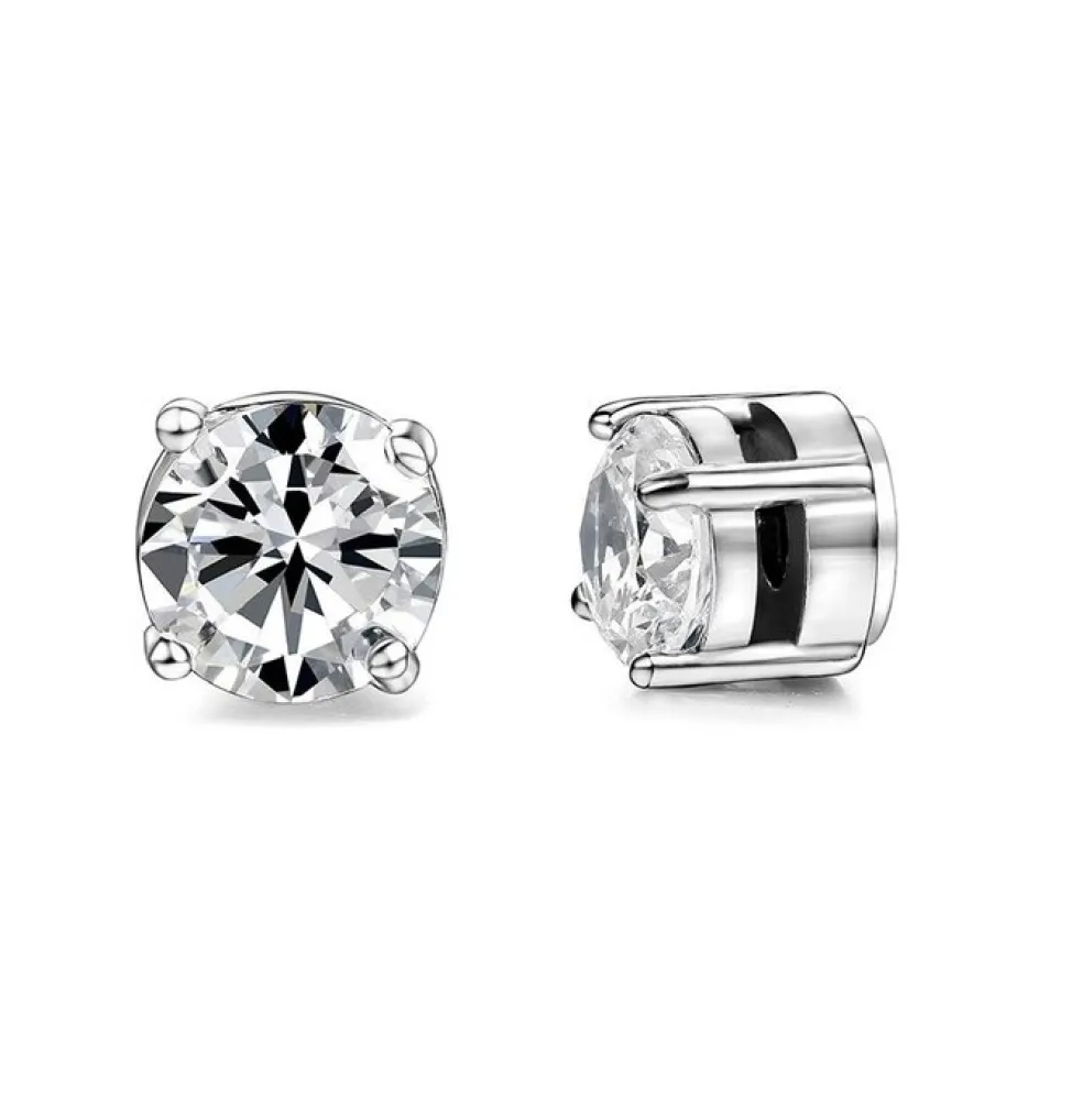 Runt kristallörhänge med magnet för dig utan hål i öronen, här i stål.