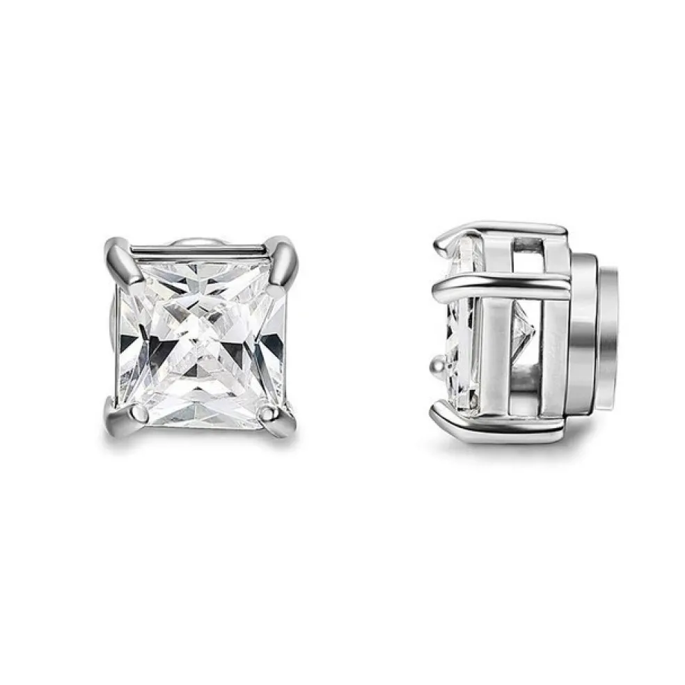 Fyrkantigt kristallörhänge med magnet för dig utan hål i öronen, här i stål.