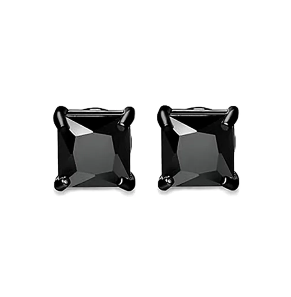 Fyrkantigt kristallörhänge med magnet för dig utan hål i öronen, här i svart stål.