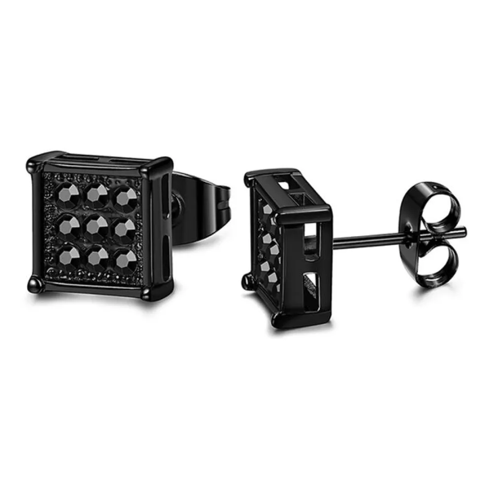 Svart örhänge i stål med nio små gnistrande kristaller på.