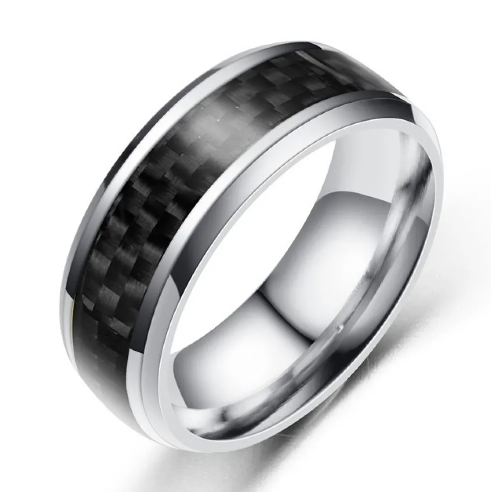 Ring i stål med carbon look i svart, modellen kommer från varumärket Eron.