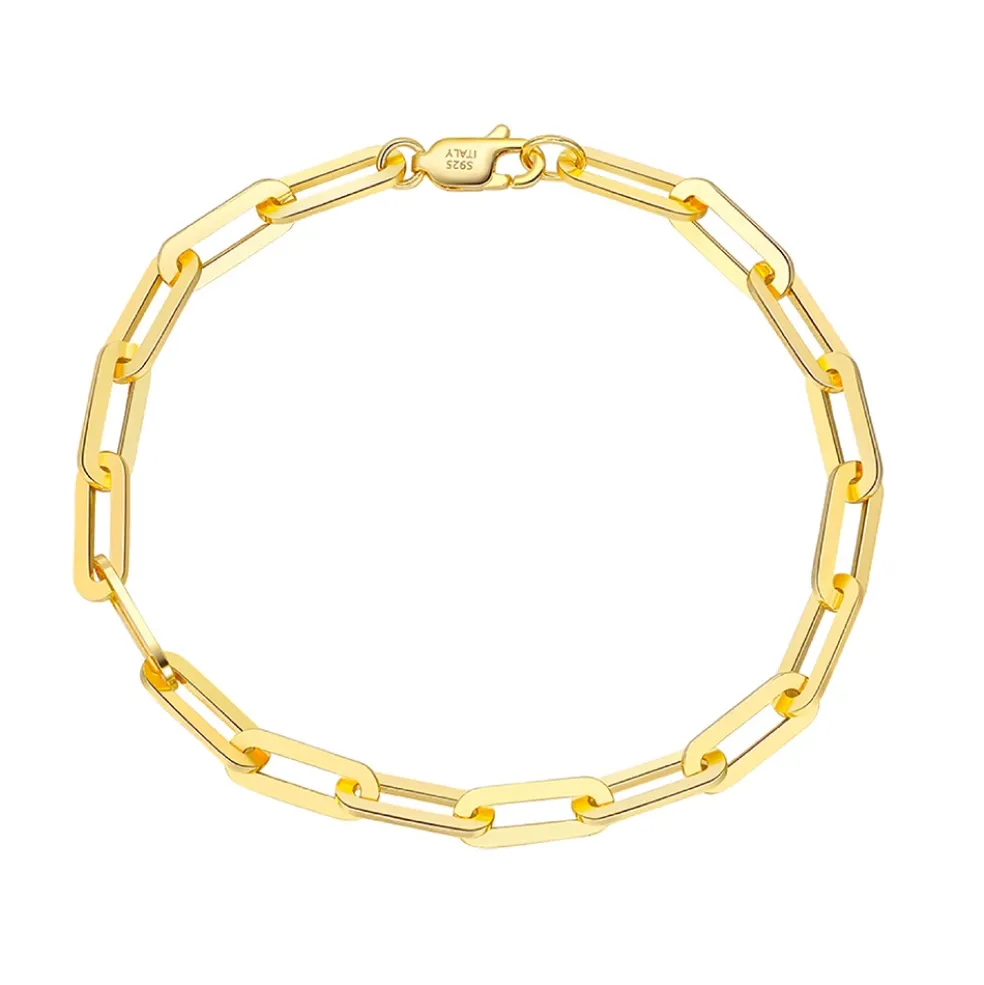 Klassisk armkedja med rektangulära länkar i guldpläterat silver från varumärket Highnose 925.