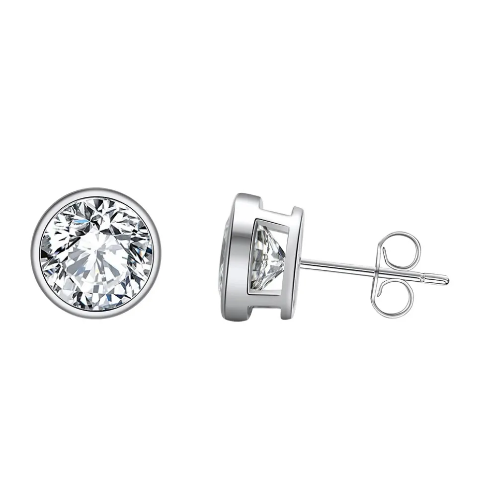Klassisk örhängsmodell som oftast kallas för Bezel, här i äkta silver med en 0,6cm stor Cubic Zirconia kristall i kvalitén AAAA.