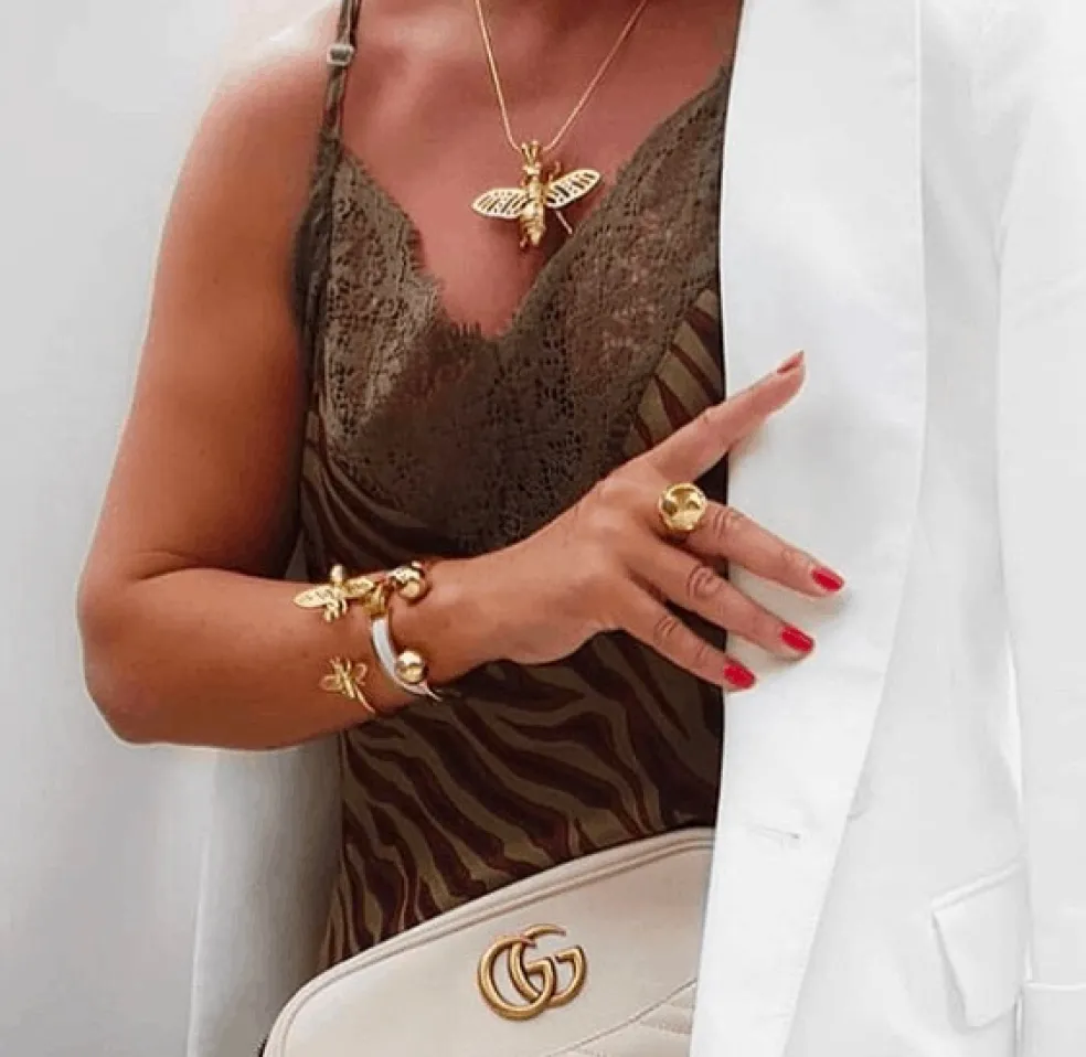 Läcker armring med två stycken bin på varsin ända av armringen. Metallen är mjuk så att du kan forma armringen efter din egna handled.
