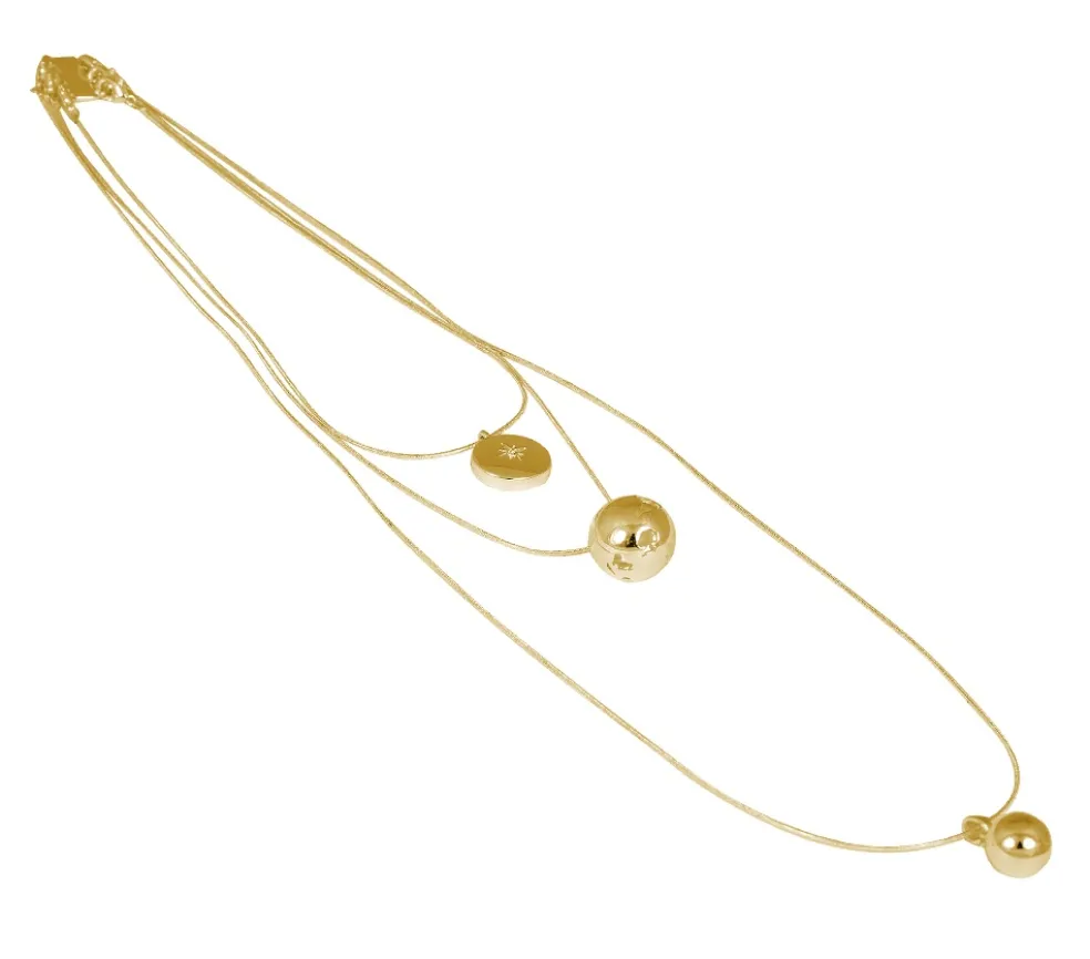 Halsbandet är utformat så att du kan använda det på tre olika sätt. Antingen med tre kedjor där globen sitter på den mellan långa kedjan och Nordtjärnan på den korta kedjan eller knäpp av den ena delen och använd halsbanden var för sig. Men snyggast blir de tillsammans med lager på lager känslan.