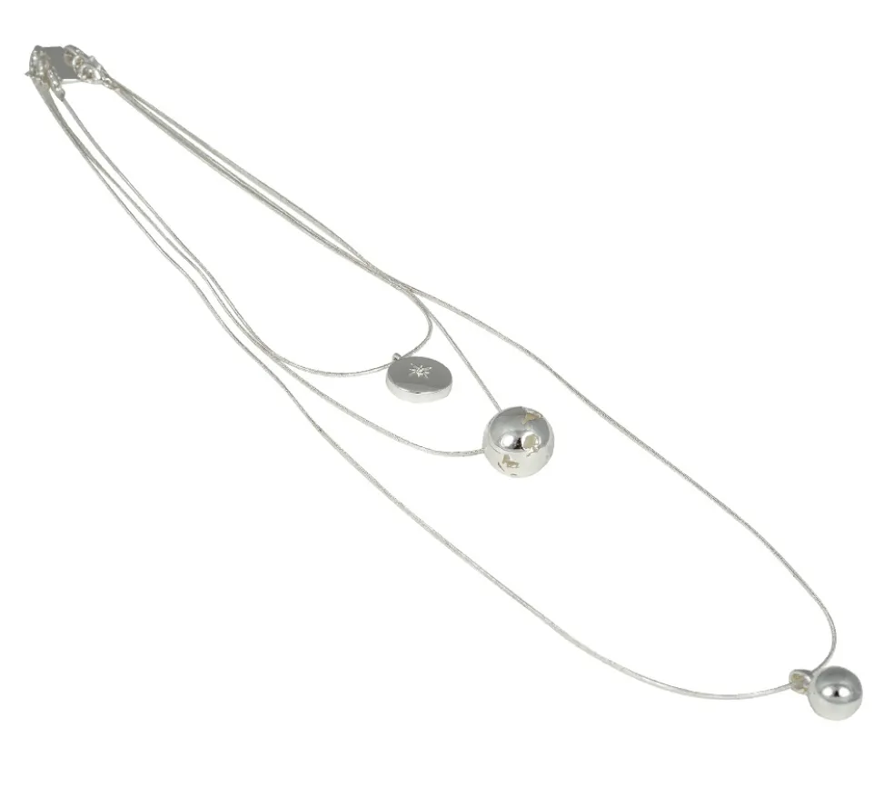 Halsbandet är utformat så att du kan använda det på tre olika sätt. Antingen med tre kedjor där globen sitter på den mellan långa kedjan och Nordtjärnan på den korta kedjan eller knäpp av den ena delen och använd halsbanden var för sig. Men snyggast blir de tillsammans med lager på lager känslan.