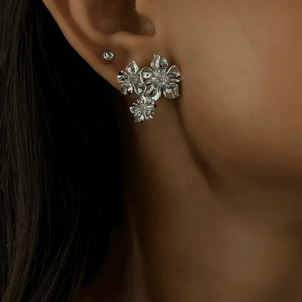 Dessa silverfärgade studs örhängen är elegant utformade med tre vackra blommor och passar perfekt att matcha med övriga smycken från seriel La Fleur. Deras unika design gör att du sticker ut och lägger till en touch av stil och elegans till din dagliga look.