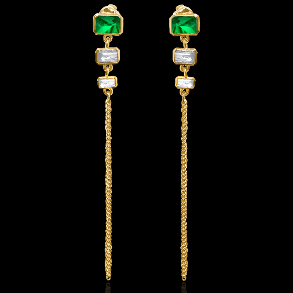 Modell; Multi Domino Crystal Earrings Gold Green Mix.