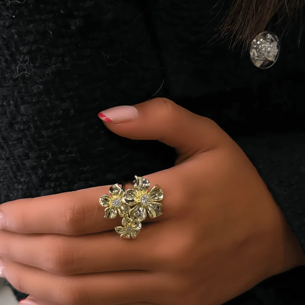 Ring La Fleur Trio med 5 lager guldplätering från varumärket Ioaku.