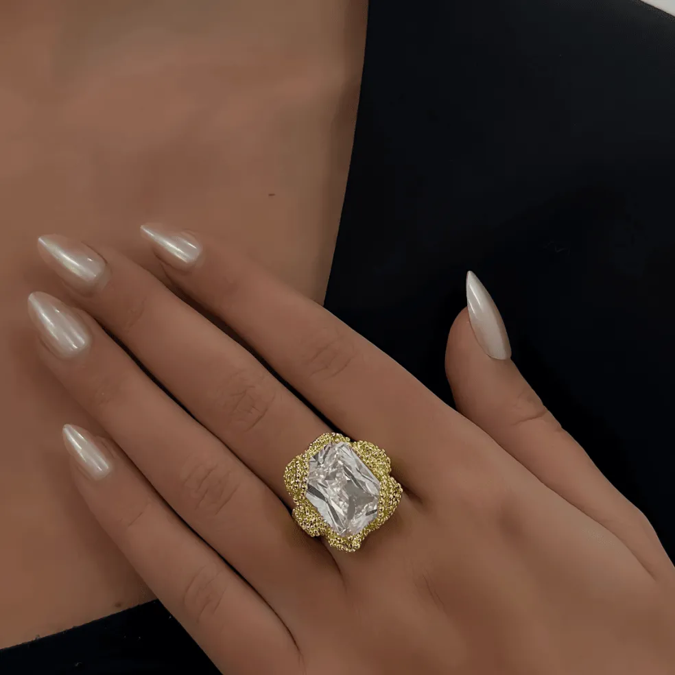 Guldfärgad ring med attityd. Ringen är tillverkade av högkvalitativa material med en bas av mässing. Ge ditt utseende en förtrollande touch med en ring från Ioaku.