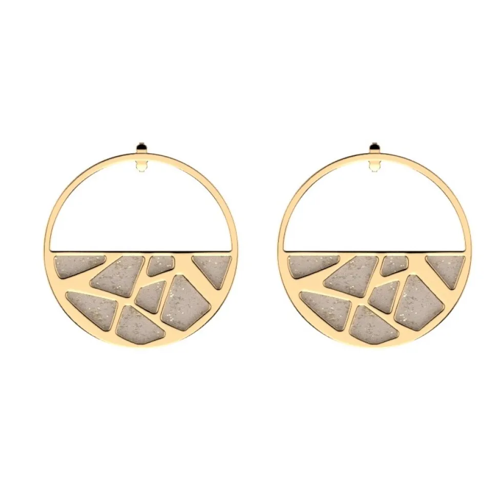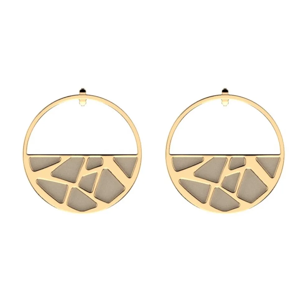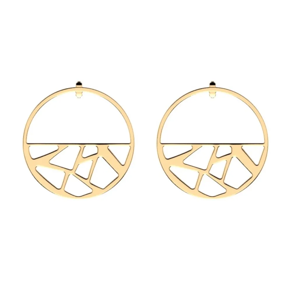 Runda örhängen från varumärket Les Georgettes, just detta mönster heter Girafe och ses här i guldplätering.
