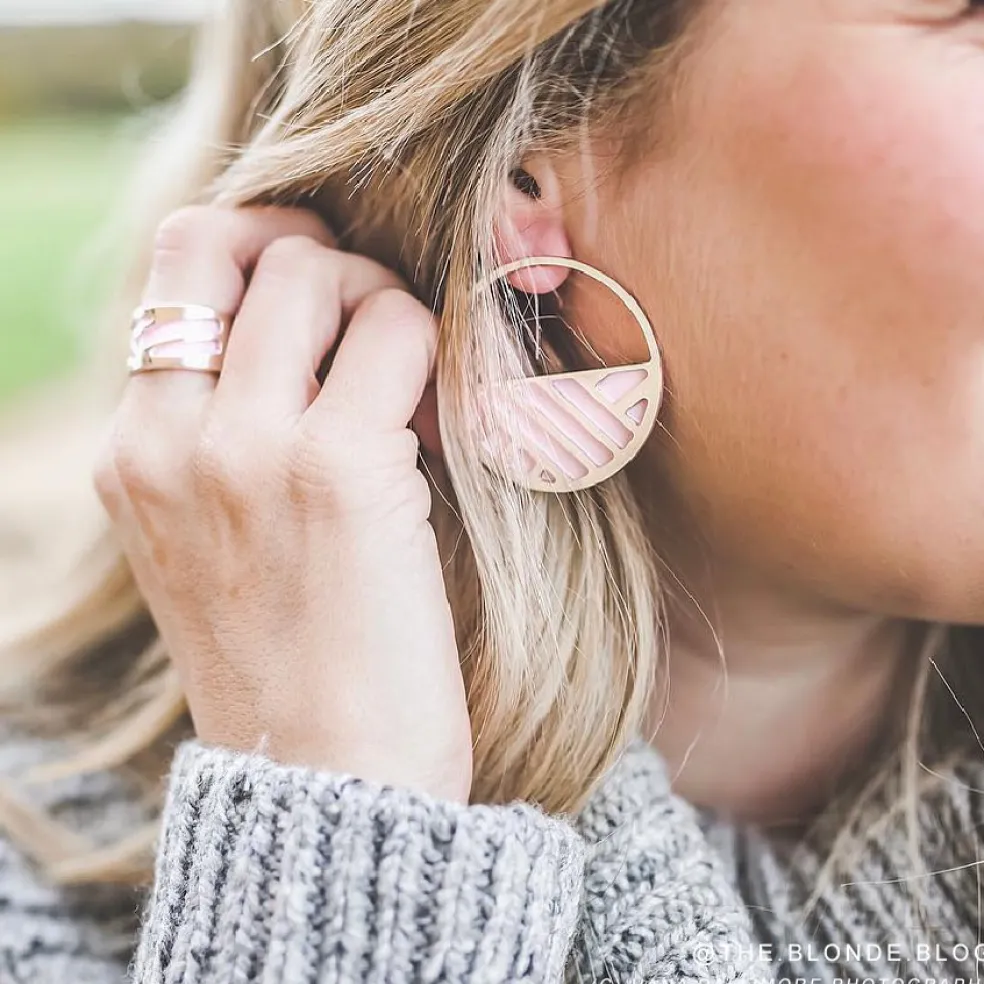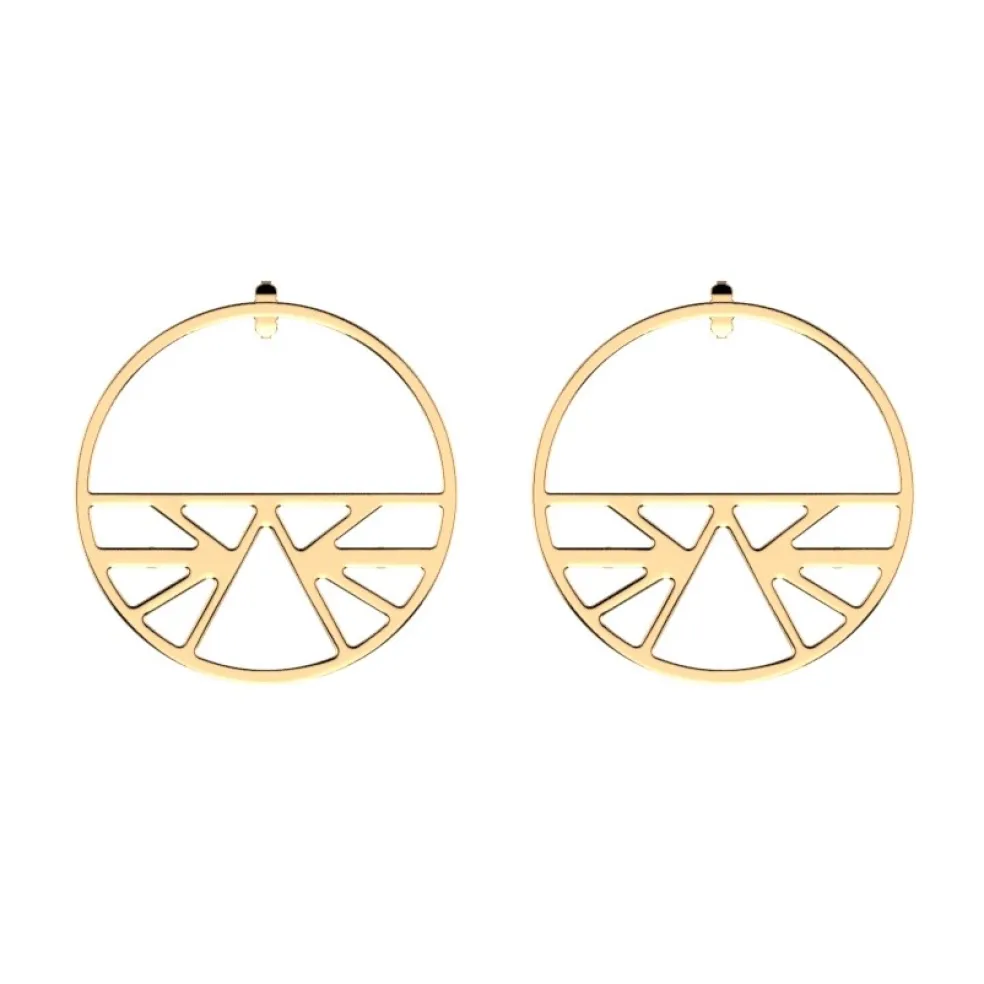 Runda örhängen från varumärket Les Georgettes, just detta mönster heter Ibiza och ses här i guldplätering.