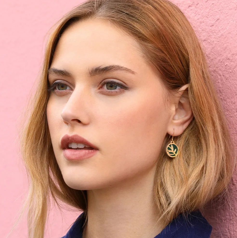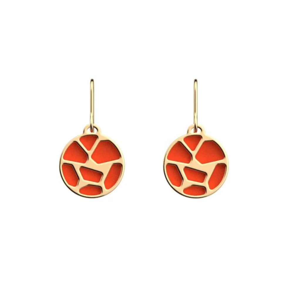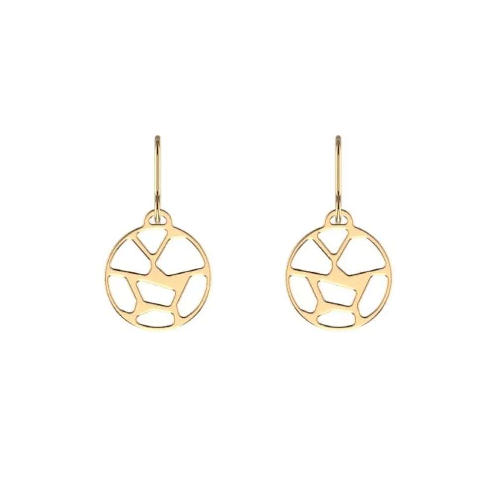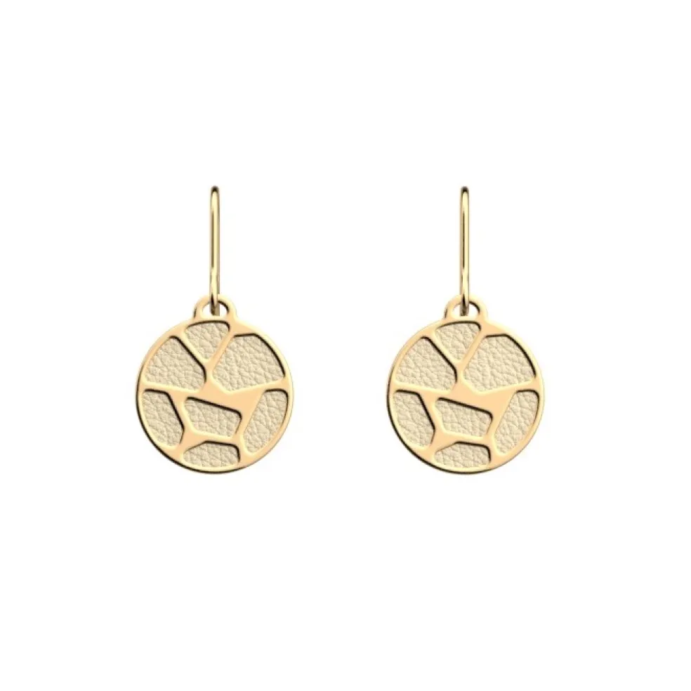 Runda örhängen på krok från varumärket Les Georgettes, just detta mönster heter Girafe och ses här i guldplätering.
