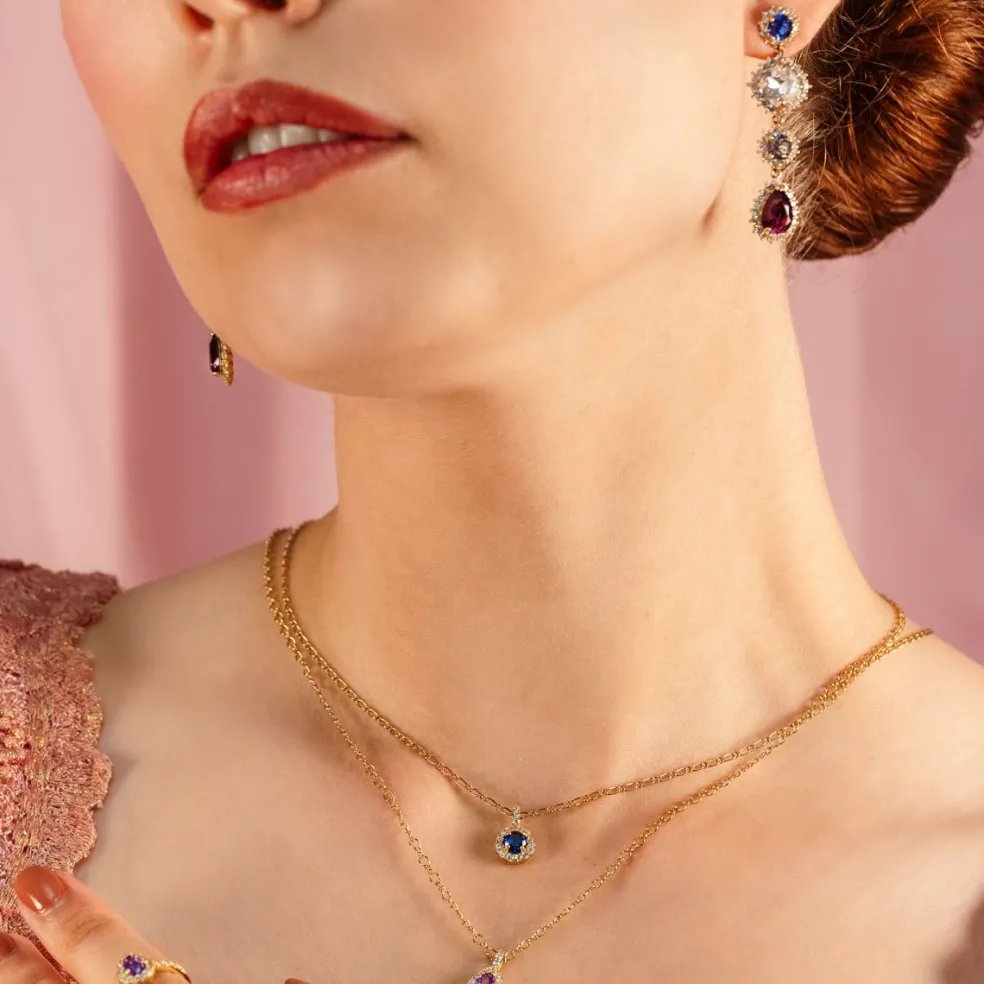 Safirblått är en mångsidig färg som passar perfekt året runt. Under hösten och vintern kompletterar den mörka, rika färgen djupa nyanser som vinrött, smaragdgrönt och grått. På våren och sommaren fungerar safirblått som en vacker kontrast till ljusare färger som vitt, beige och pasteller. Bär halsbandet med en enkel stilren klänning för en elegant framtoning, eller para det med en skjorta och jeans för en mer avslappnad, men ändå chic stil.