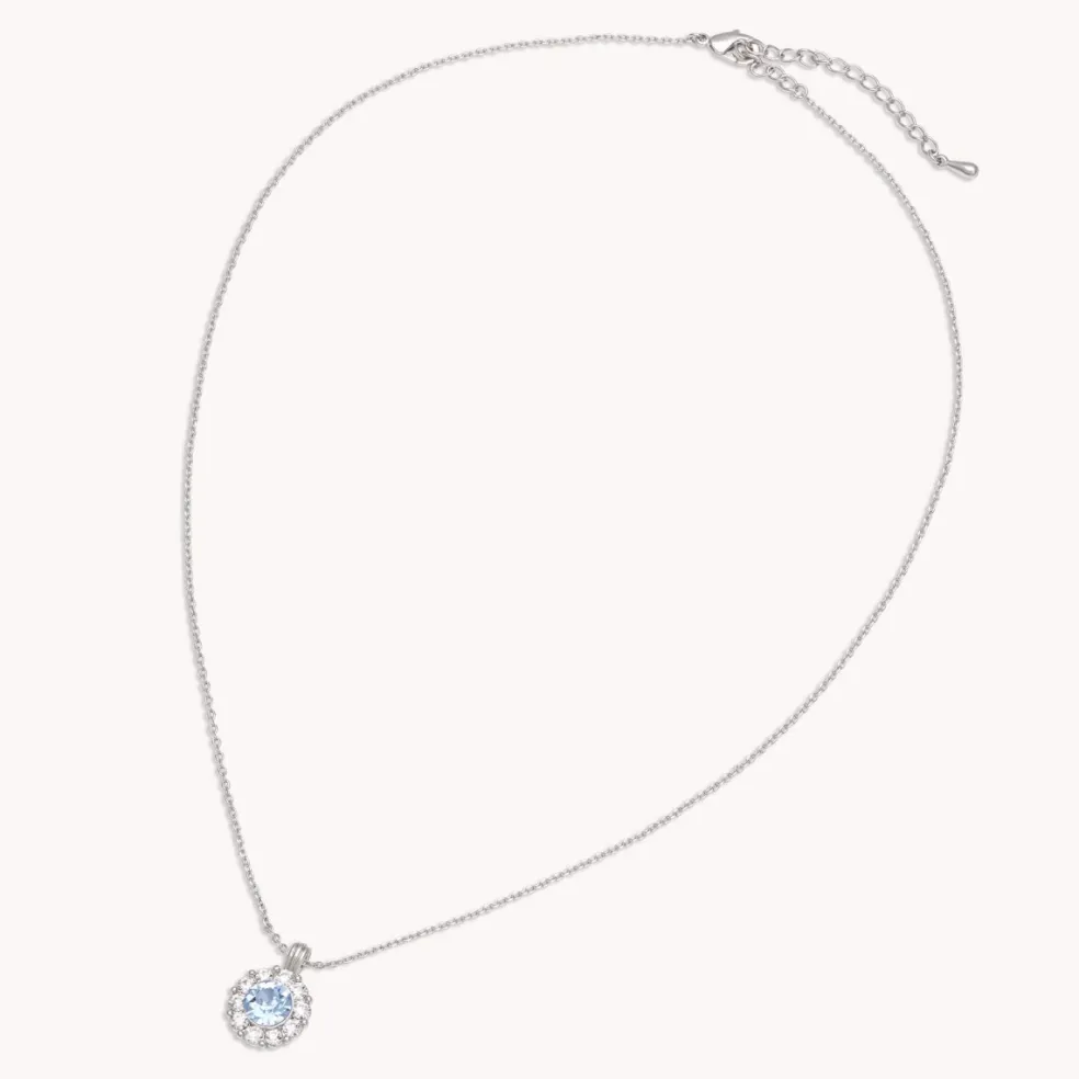 Med en ljusblå kristall i centrum, omgiven av gnistrande klara kristaller blir halsbandet snabbt en favorit i din smyckessamling. Oavsett om det bärs till vardags eller vid mer speciella tillfällen, kommer Light Sapphire-halsbandet alltid att dra blickarna till sig och komplettera din look med en elegant gnista. Glöm inte att köpa till matchande örhängen.