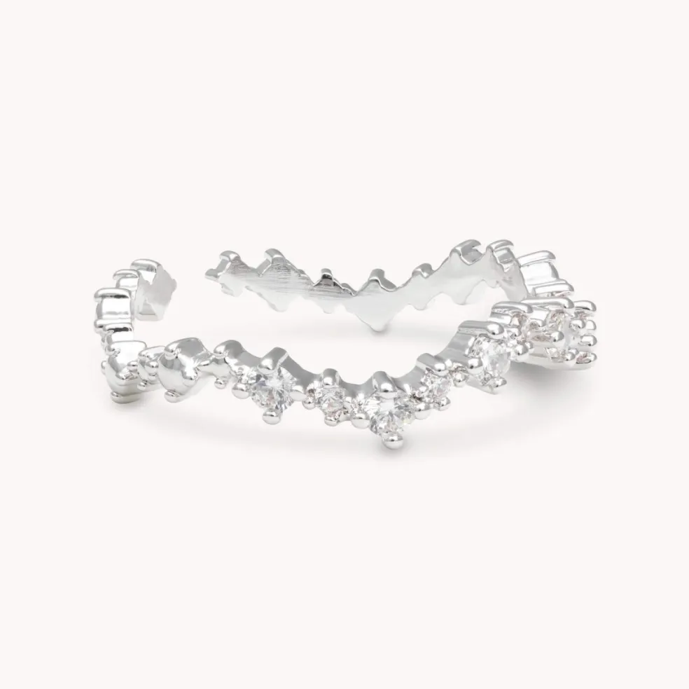 Upptäck förtrollningen med Lily and Rose's ring – Petite Capella som är ett enastående tillskott till deras senaste kollektion. Denna utsökta ring är omsorgsfullt designad med böjda linjer i elegant silver och prydd med gnistrande små ädelstenar som fångar ljuset på ett magiskt sätt.