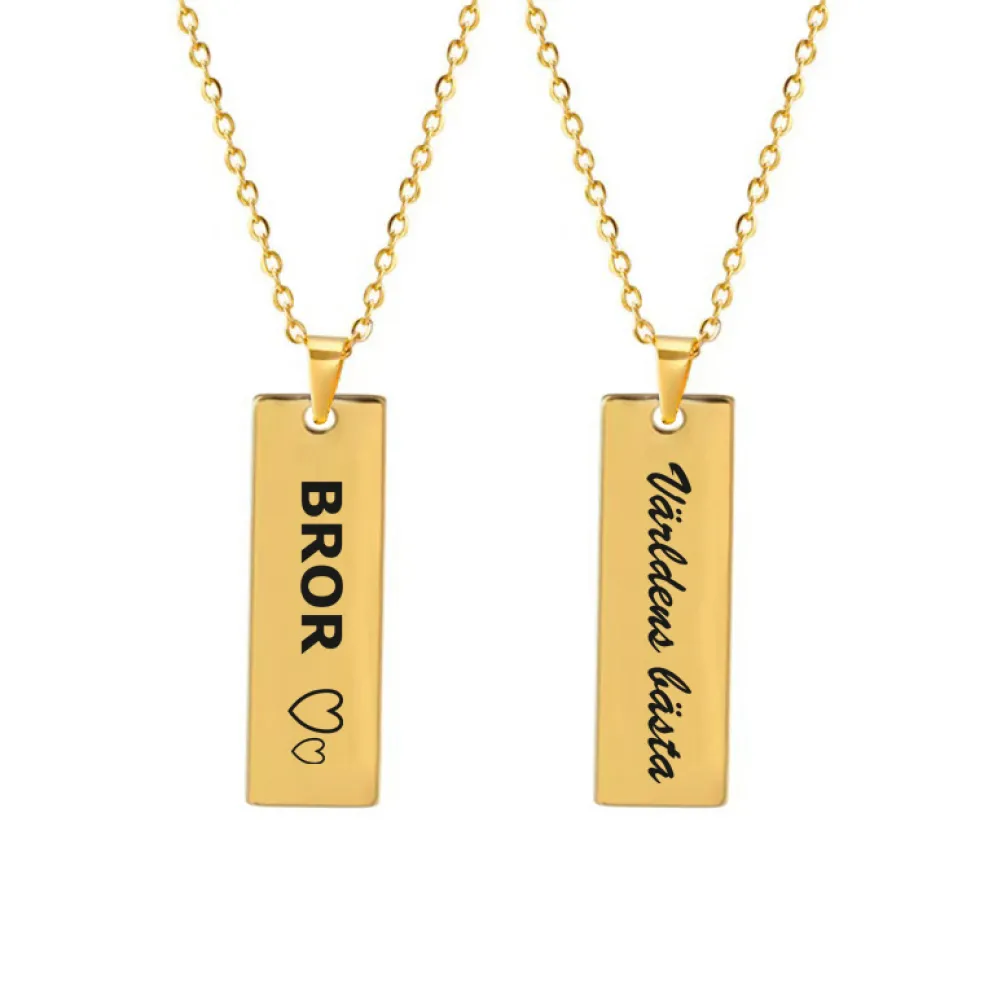 Halsband med budskapet Världens Bästa Bror, allt tillverkat i guldpläterat stål.