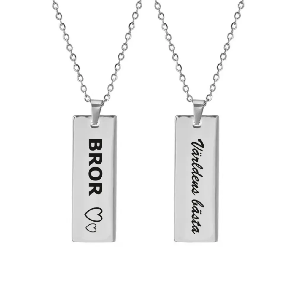 Halsband med budskapet Världens Bästa Bror, allt tillverkat i stål för bästa hållbarhet.