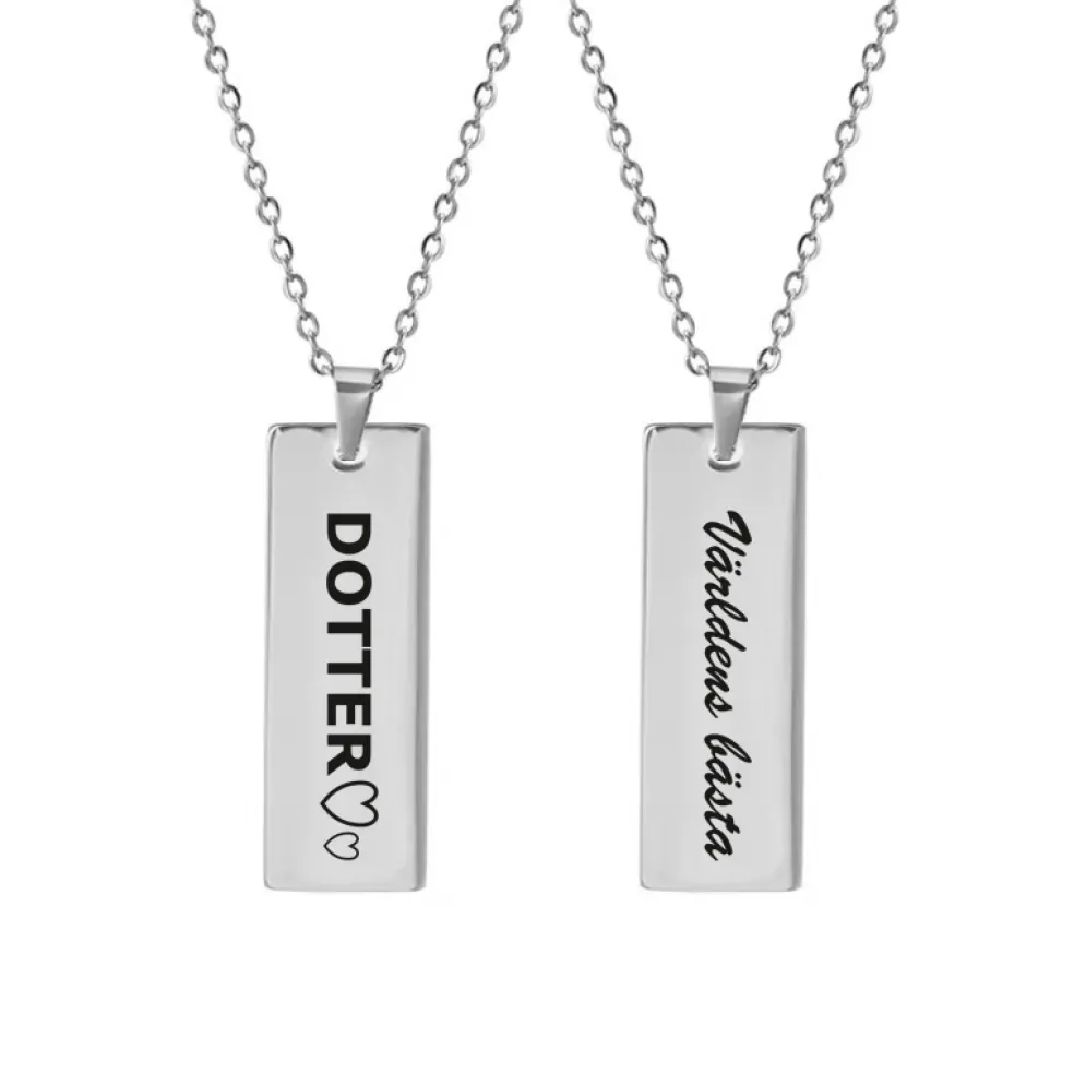 Halsband med budskapet Världens Bästa Dotter, allt tillverkat i stål för bästa hållbarhet.