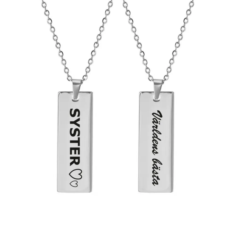 Halsband med budskapet Världens Bästa Syster, allt tillverkat i stål för bästa hållbarhet.