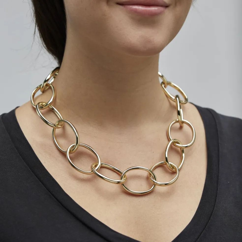 Uttryck dig fritt och våga väcka uppmärksamhet med det iögonfallande stora halsbandet. Låt de vackra, luftiga ringarna ligga nonchalant på solkysst hud och framhäv din unika och obesvärade elegans och personlighet.
