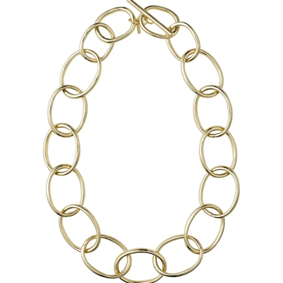 Ett coolt guldpläterat statementhalsband som osar av den överskottsenergi man upplever i LA, hemstaden för karismatiska och trendiga personligheter.
