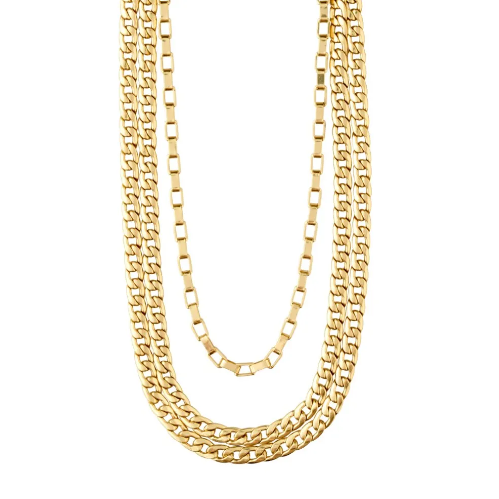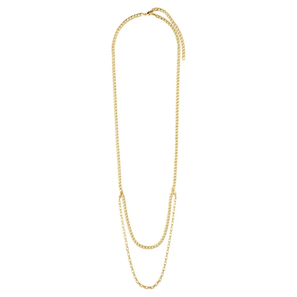 Säsongens måste-ha-smycke är utan tvekan den guldpläterade multikedjan från Pilgrims Clarity-kollektion. Kedjan är hela 100 cm och kan användas som ett elegant halsband i en vardagligt outfit eller som ett trendigt kedjebälte till dina jeans eller en överdimensionerad skjorta. Låt din individualitet komma fram och lek med möjligheterna.