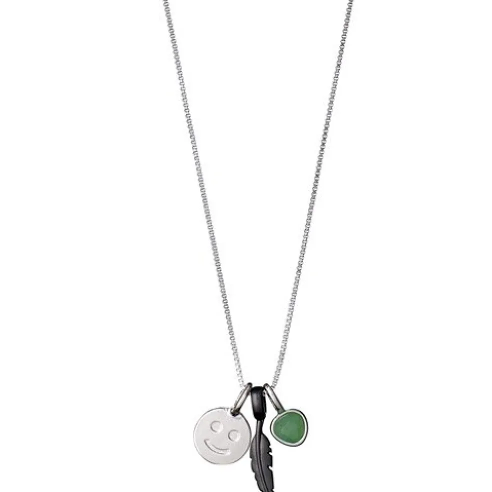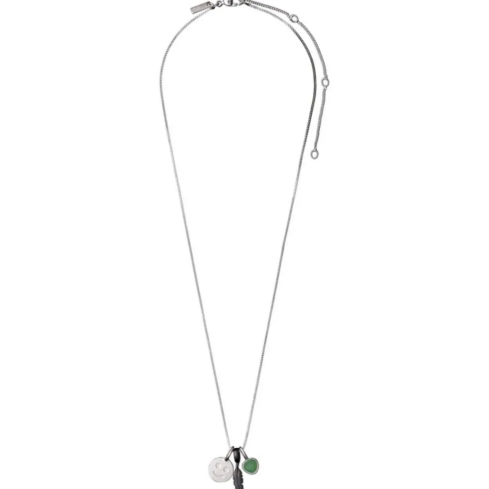 Halsband Happiness med tre berlocker på från Pilgrims serie Fortune. Halsbandet levereras på ett litet kort där det står; Be Energetic – Your Words Are Your Wings – Dare To Fly.