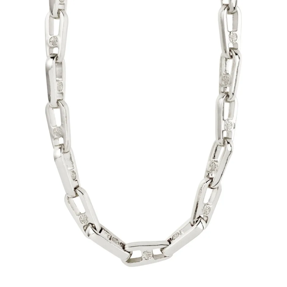 Låt kärleken styra och låt dig inspireras av det silverpläterade kedjehalsbandet från Pilgrims senaste kollektion. Halsbandets urbana unisexdesign och chunky kedjelänkar har en tung kvalitetskänsla, som utstrålar rå feminin styrka och självförtroende. Unika LOVE detaljer kompletterar kedjans robusta och trendiga uttryck.