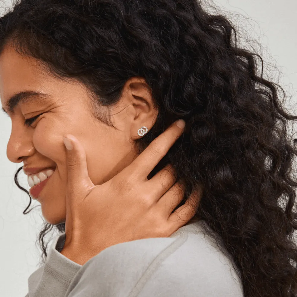 Eleganta små studs med två ringar som sitter ihop. Örhängena är dekorerad med klara Preciosakristaller.