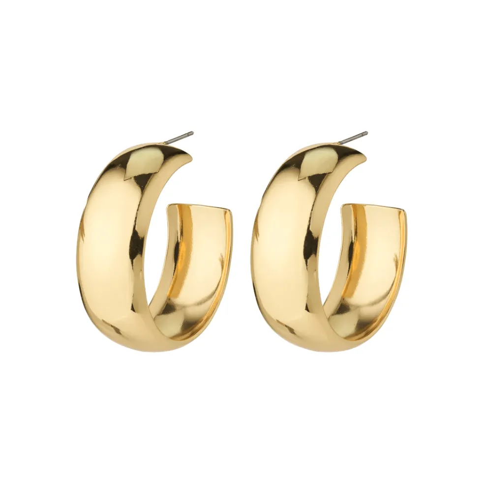 Det kan aldrig bli fel med ett par enkla guldpläterade creoler. Använd de breda örhängena till vardags eller kombinera dem med andra festliga accessoarer när du ska på fest.